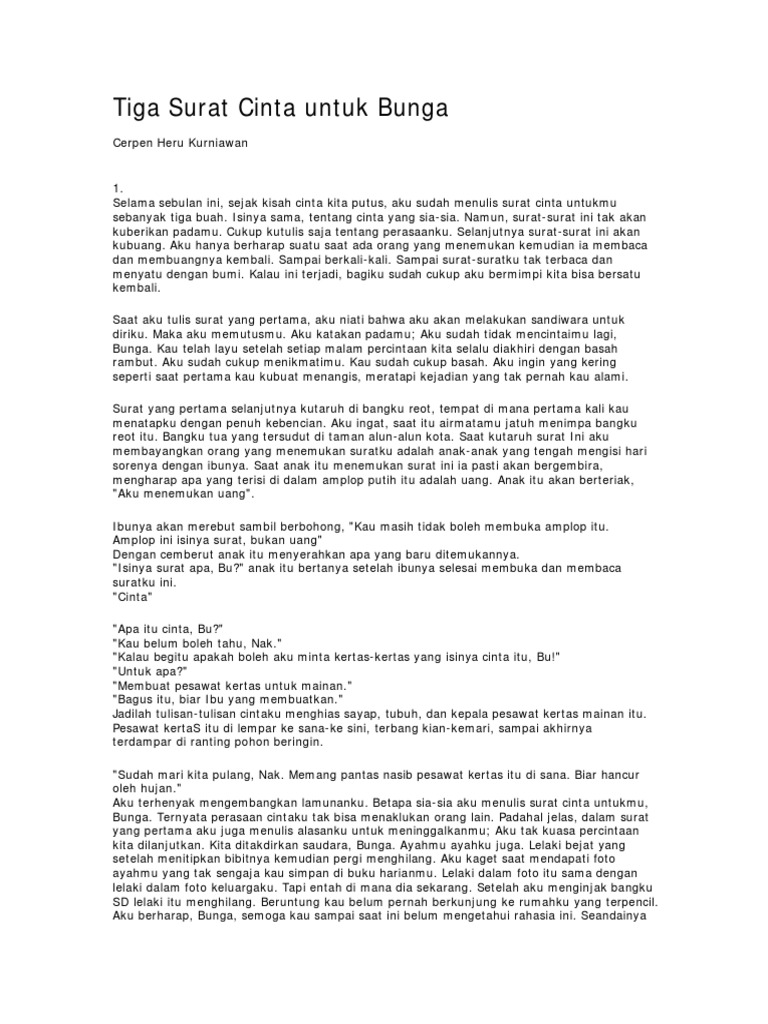 Cerpen Cinta 1 Feb 2010 Mr Teddy 244 Comments. Selama Masih Hidup Kamu Harus Membaca 10 Cerpen Ini. Kalau kau berbuat baik maka secercah cahaya kecil akan memasuki matamu.